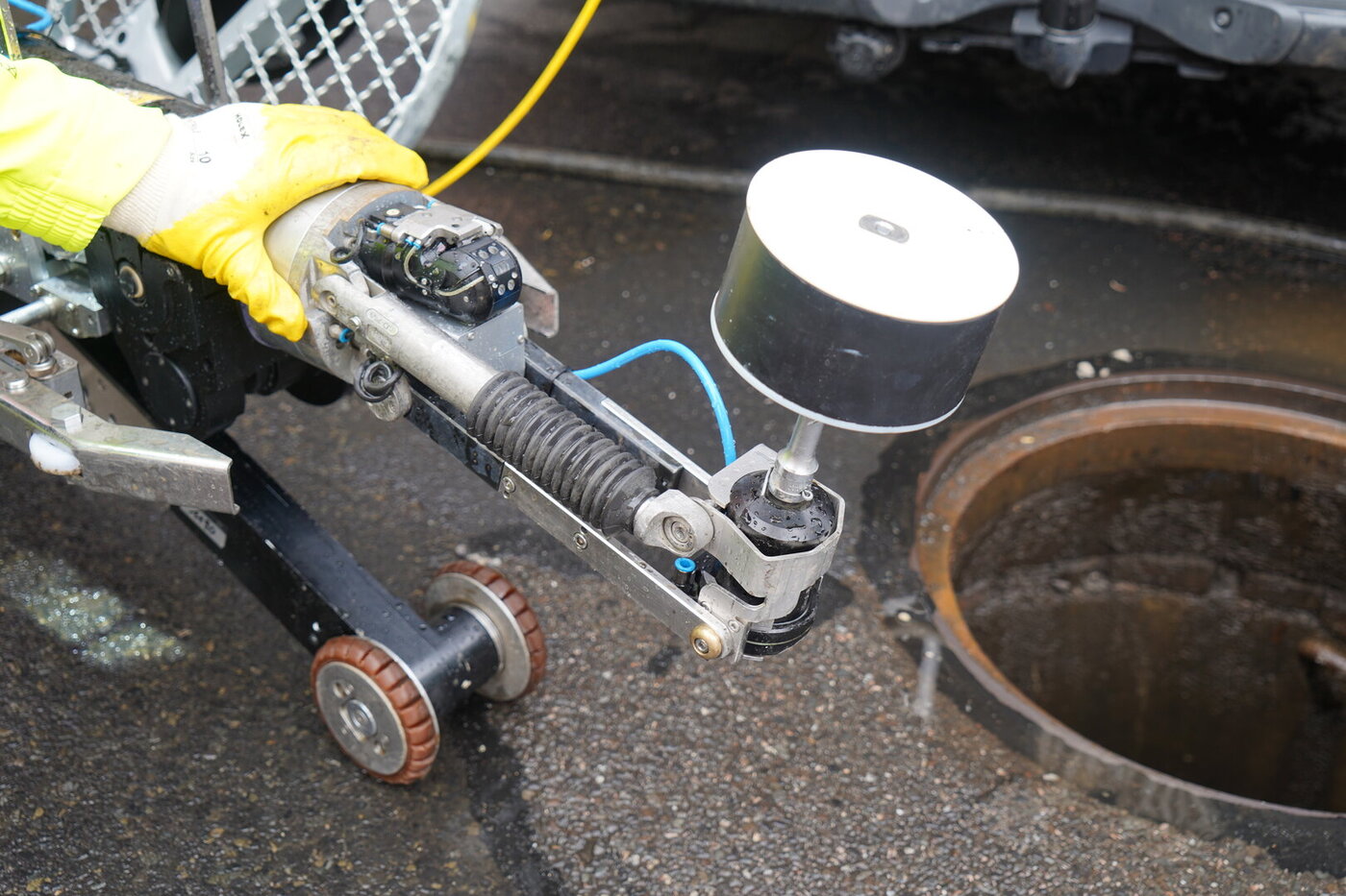 Die Stadtentwässerung Dresden testete den Roboter MicroGator Air mit Schwalm-Adapter zum sicheren Verschluss von Anschlusskanälen. Die bereitgestellte Robotertechnik von IBAK ermöglicht die ferngesteuerte Platzierung und Befestigung der speziellen Verschlussstopfen.